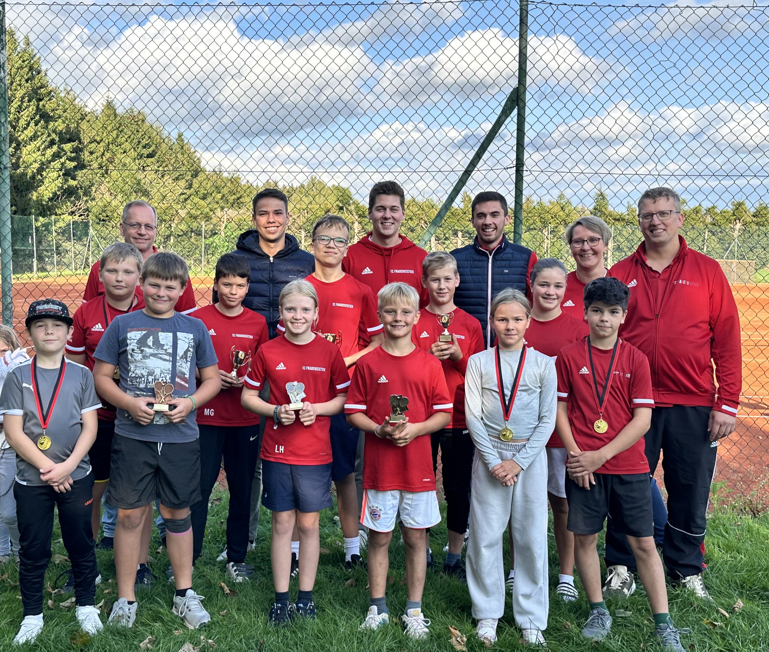 Die Teilnehmer der Jugendvereinsmeisterschaften 2025 des TC Frauenstetten beim Siegerbild